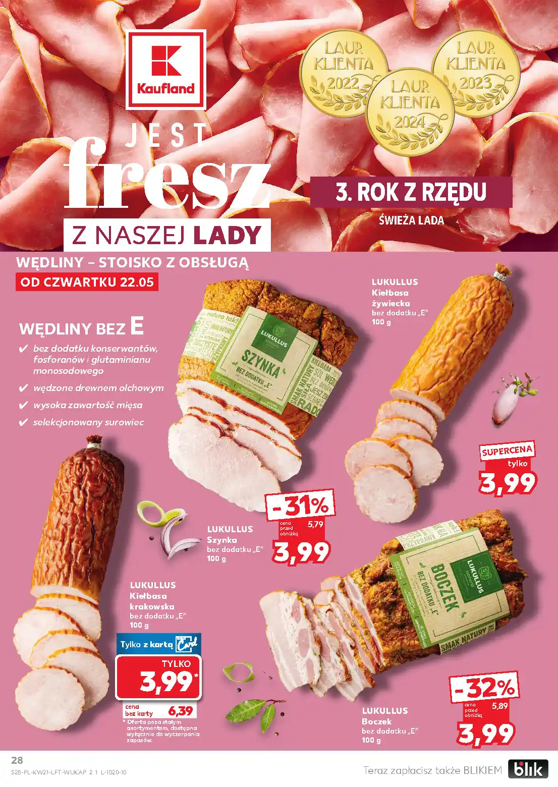 Gazetka Kaufland od 22 maja 2025 ✅ Od czwartku czeka na Was nowy katalog pełen nowych promocji i rabatów. Tylko przez kilka dni z kartą klubową będzie można skorzystać z kuponów „3+3 gratis” i „2+1”, które pozwolą na zrobienie większych zakupów w atrakcyjnej cenie. Czekają świetne okazje na mięso, sezonowe warzywa, owoce i inne artykuły codziennego użytku. Warto dokładnie przejrzeć wszystkie strony - wiele promocji obowiązuje do wyczerpania zapasów.